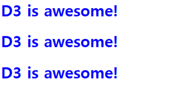 d3.selectAll("h1") // 모든 <h1> 요소 선택