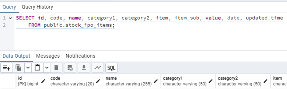 연결된 DB에 해당 테이블이 생성된 것을 확인할 수 있다.