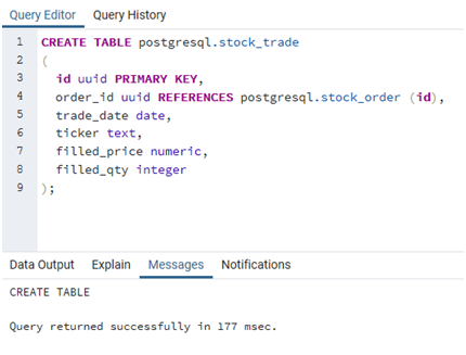 stock_trade 테이블을 만들면서 왜래키를 지정했다. 즉 실제로 stock_order 테이블에서 발생한 주문 번호를 stock_trade 테이블의 체결된 데이터와 연결시키는 것이다.