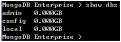 bin\mongo.exe를 실행 후 show dbs를 입력해보자.