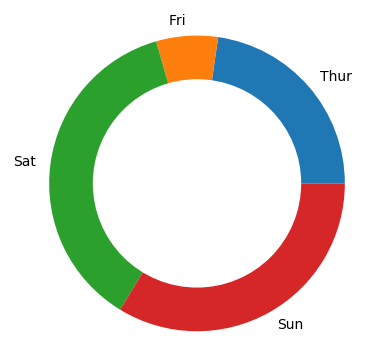 plt.pie(data=total, labels=total['day'].drop_duplicates().to_list(), x=total['total_bill'])